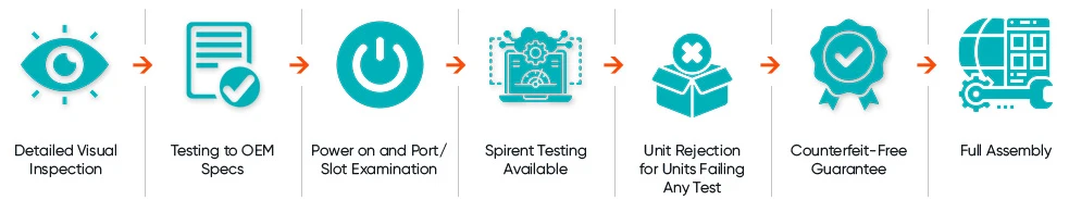 Our technicians complete an end-to-end physical inspection and authenticity verification for all incoming equipment to the board-level, including the following protocols: