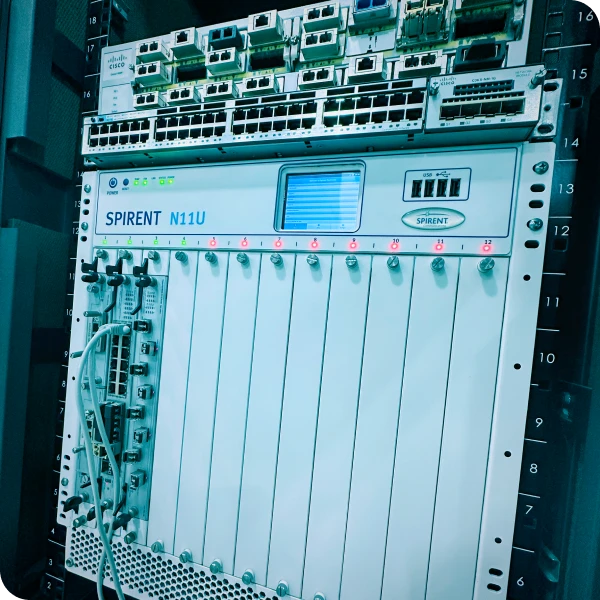 We don't just test — we stress-test. Using Spirent network simulation, we push every piece of hardware to its limits.